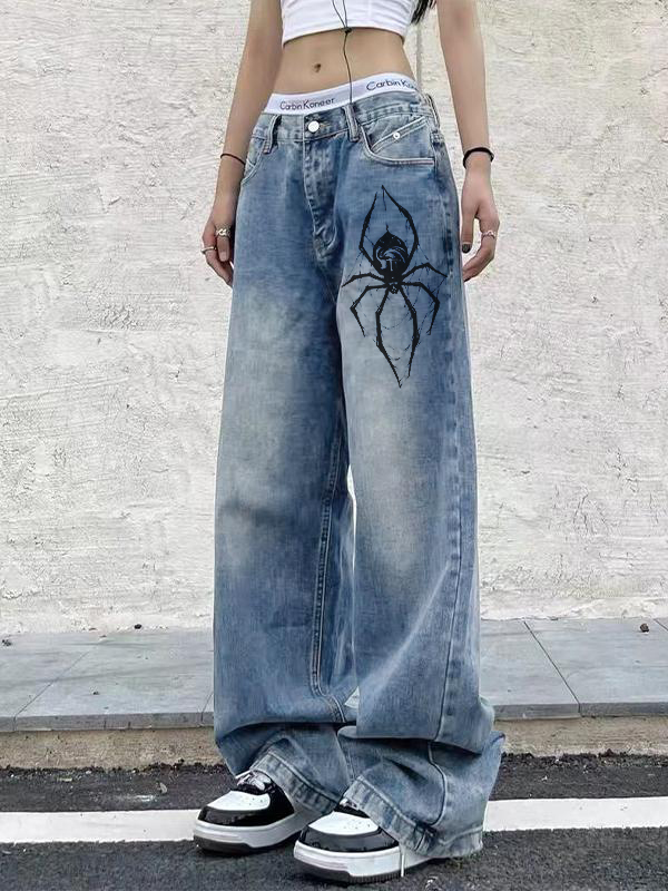 Spider Print Loose Casual Boyfriend Jeans