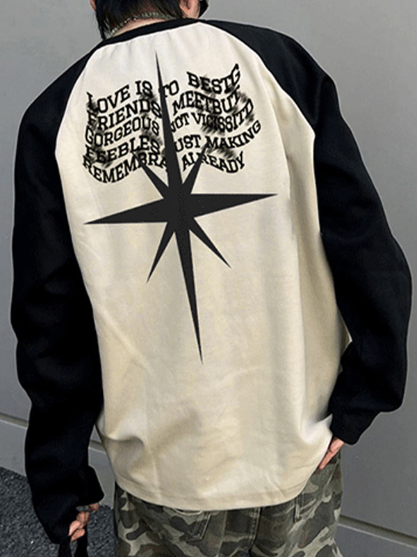 Men’s Vintage Print Raglan Loose Long Sleeve Tee