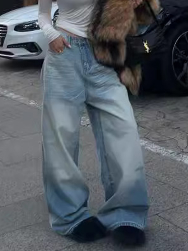 Retro Cat Whiskers Pattern Boyfriend Jeans