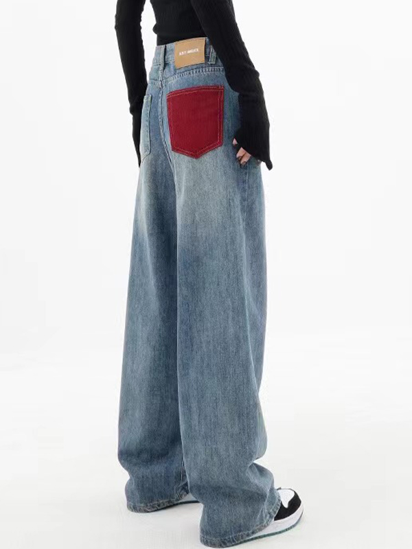 Red Contrast Pocket Boyfriend Jeans