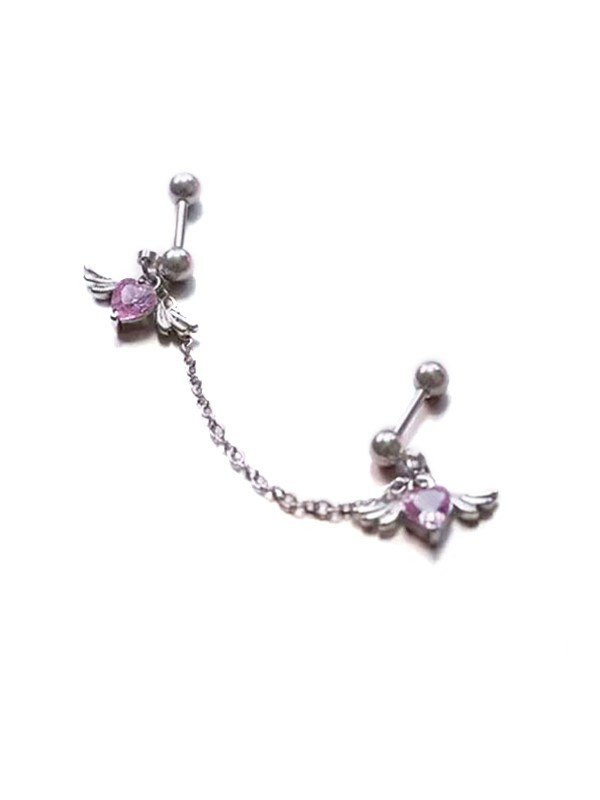 Winged Heart Charm Chain Earrings