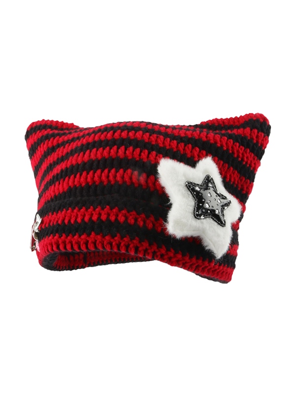 Cat Design Star Decor Beanie Hat