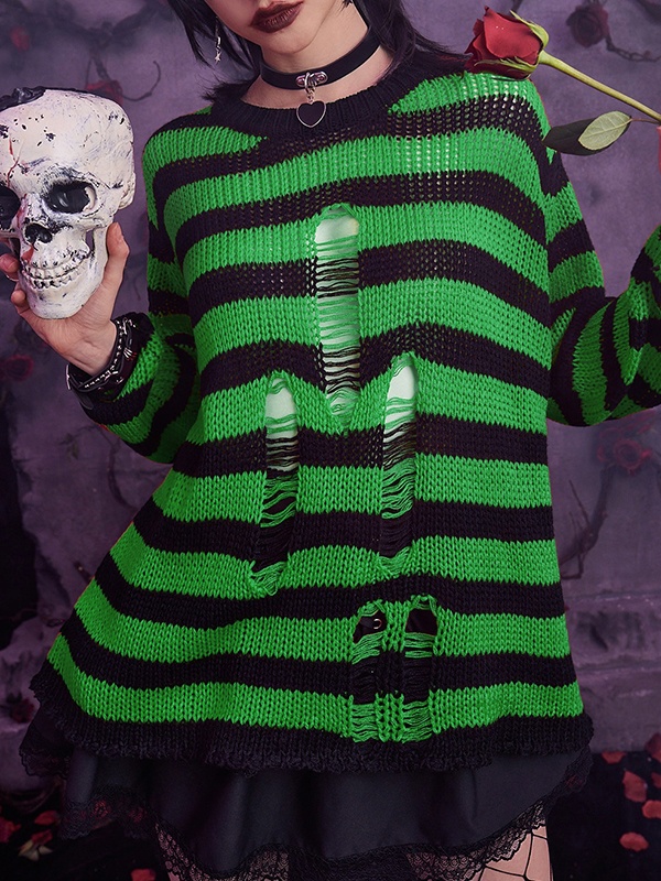 Stripe Cutout Smock Long Sleeve Knit