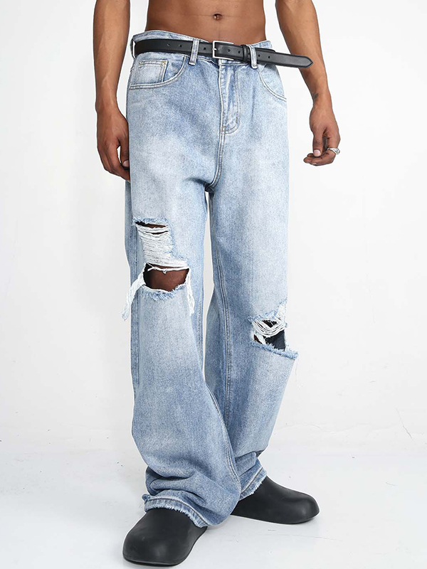 Holed Cat Whiskers Design Mopping The Floor Ripped Jeans