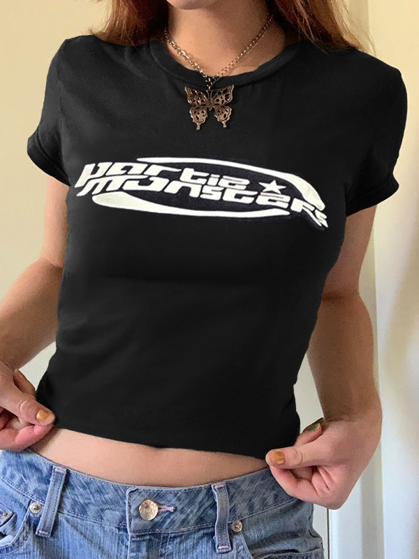 Solid Crew Neck Cropped Short Sleeve Tee