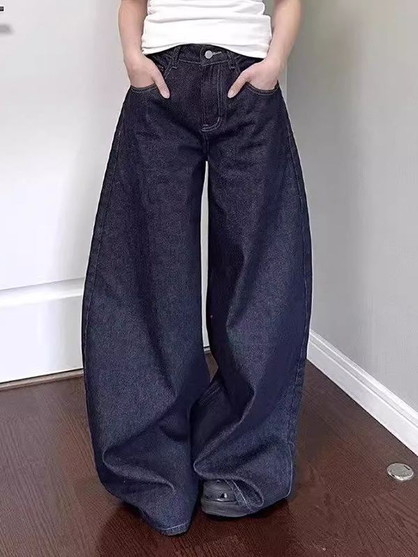 Washed baggy high waist straight mopping jeans
