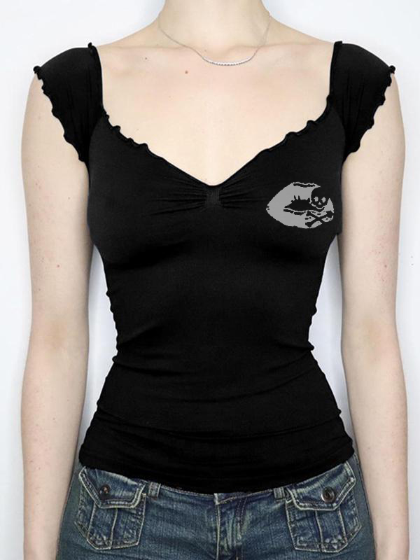 Lip Skull Print Retro Short Sleeve Tee