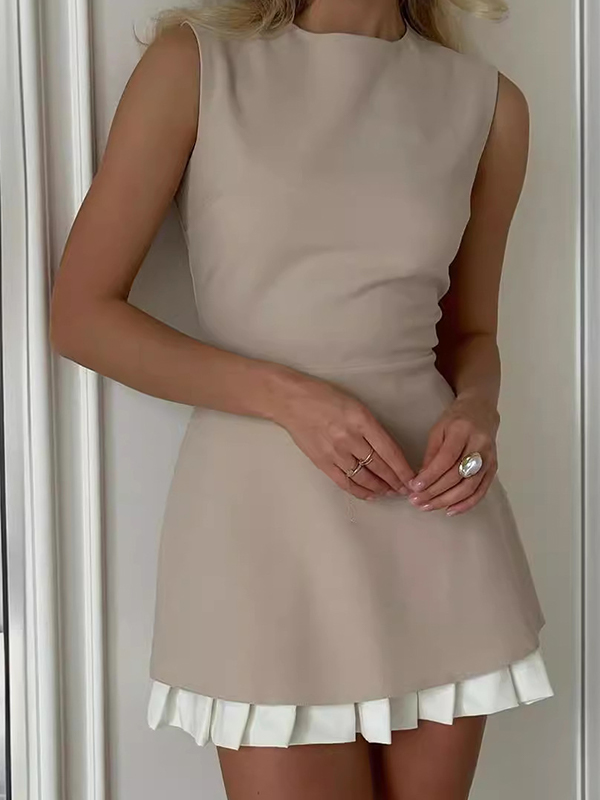Paneled Ruffled Hem Sleeveless Mini Dress