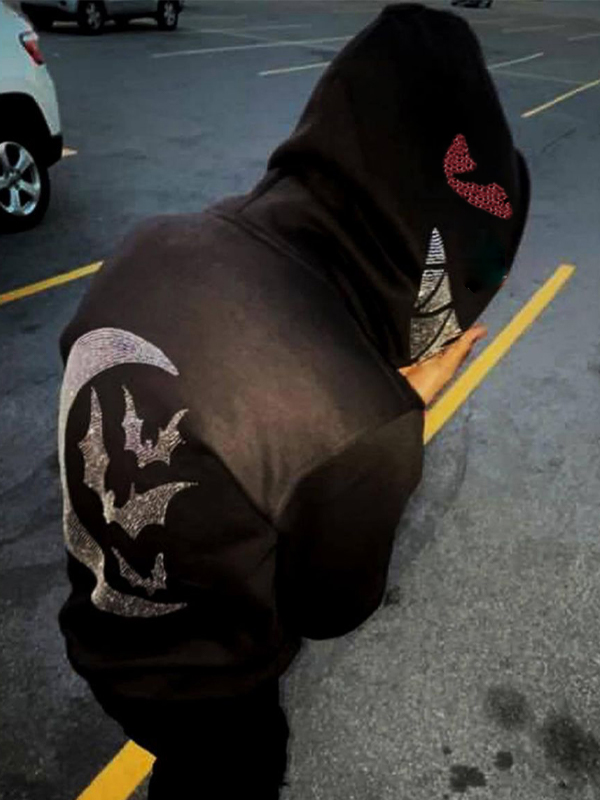Men’s Devil Moon Rhinestone Print Slim Oversized Hoodie