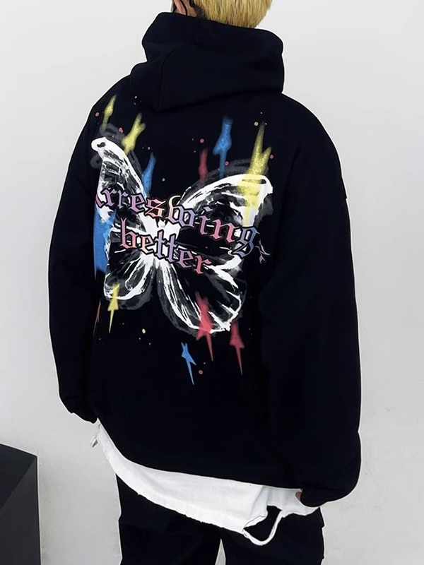 Men’s Street Colorful Star Butterfly Print Oversized Hoodie