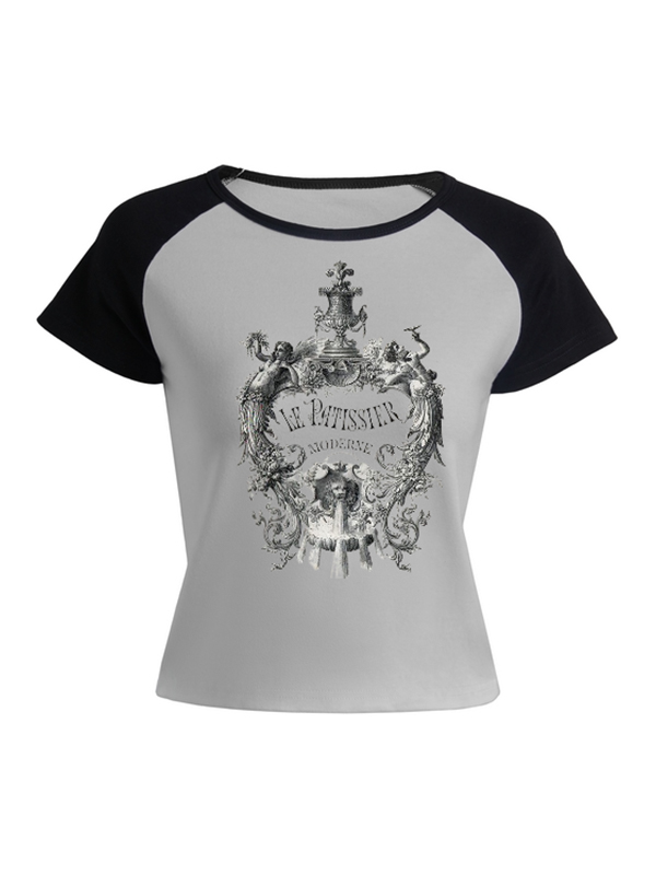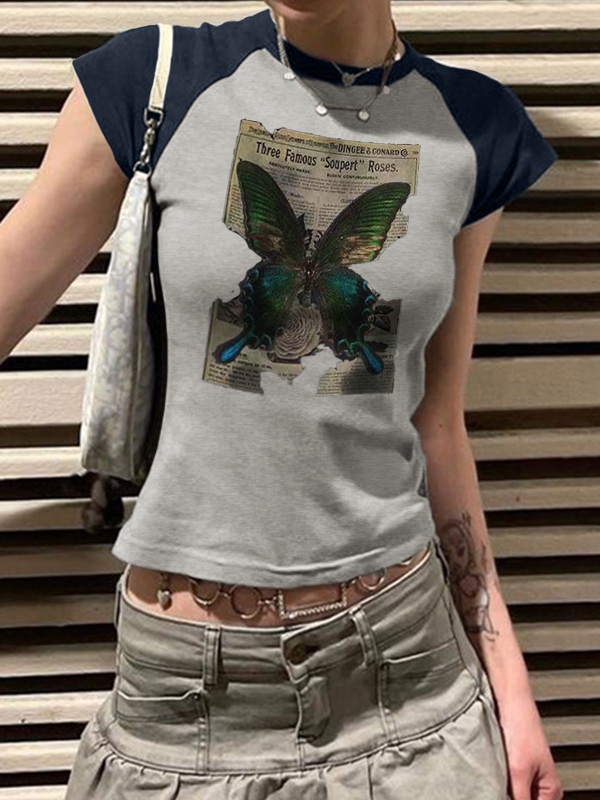 Vintage Butterfly Print Raglan Short Sleeve Tee