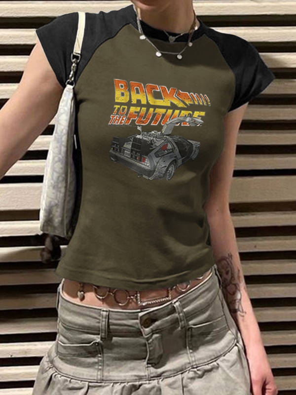 Lettering Racing Raglan Sleeve Cropped Top