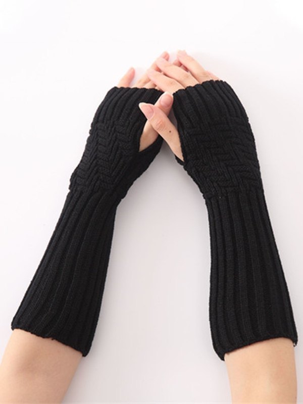Fingerless Jacquard Ribbed Knit Arm Warmer