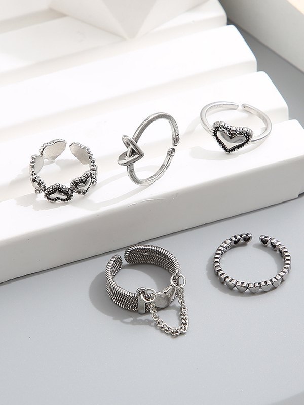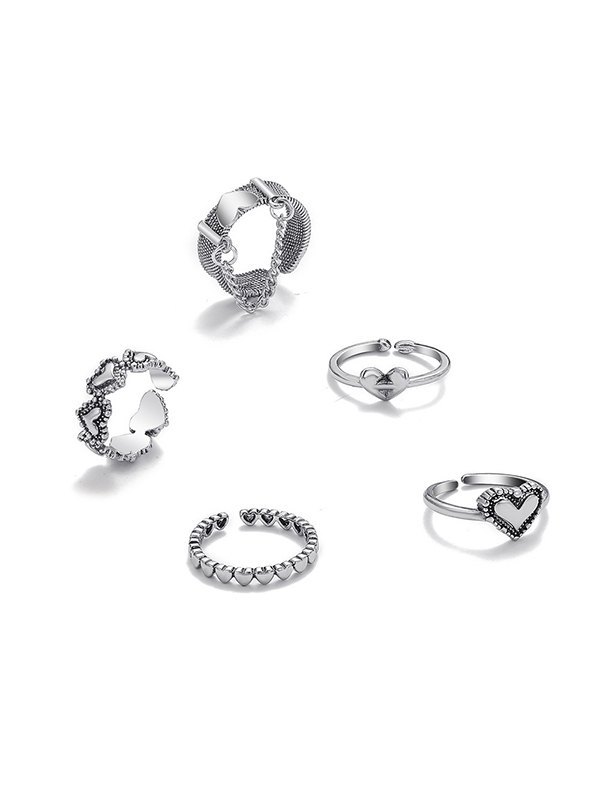 5pcs Heart Decor Silver Cuff Ring