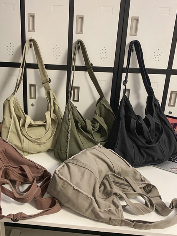 Details: This crossbody bag with canvas design which is casual, also have burr as decor with large capacity.