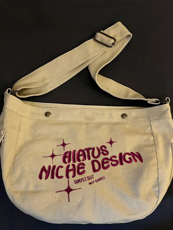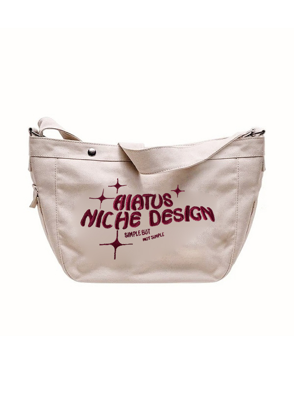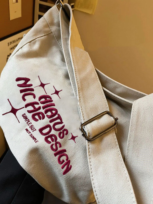 Details: Features contrast letter embroidered, adjustable shoulder strap and zip fasten design.