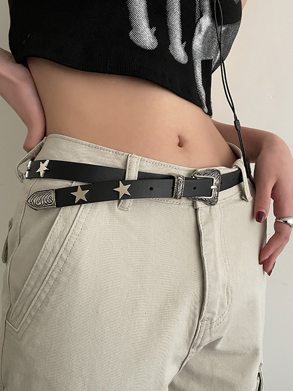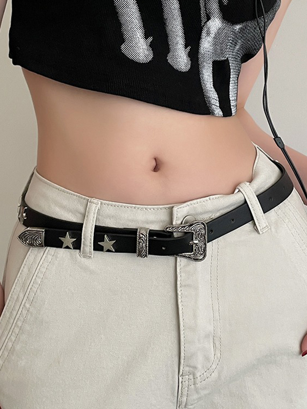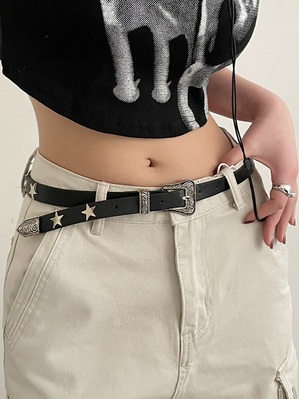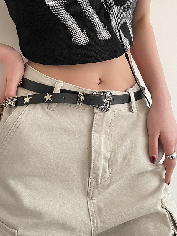 Engraved Design Metal Star Decor Buckle Belt