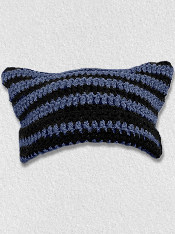 Be the first to review “Hand Made Horn Detail Striped Knitted Beanie Hat”