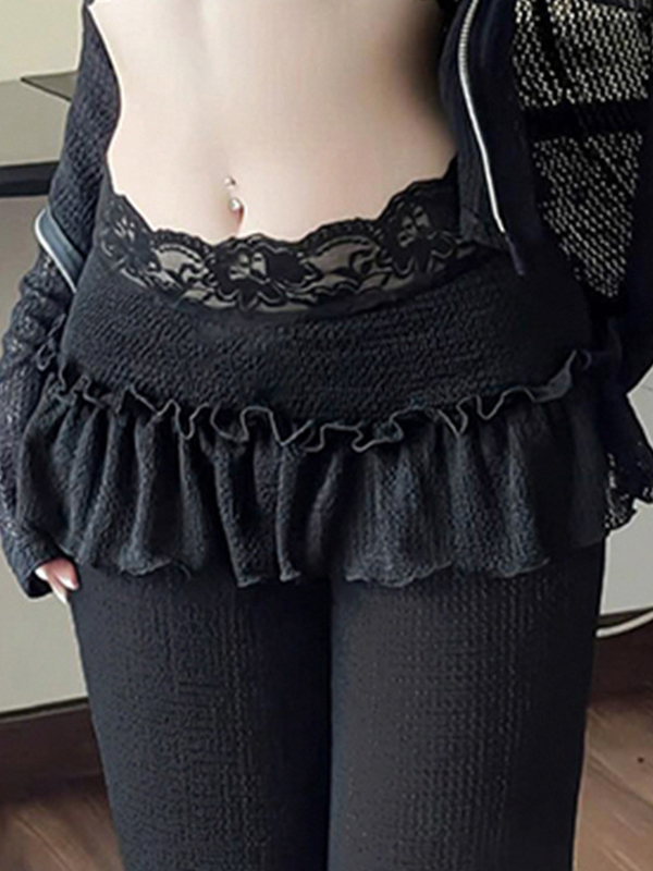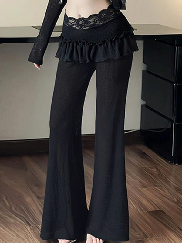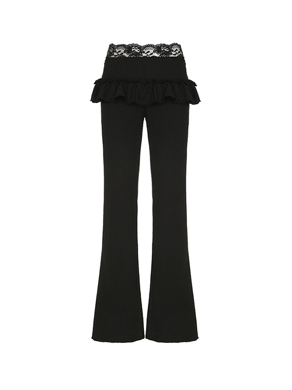 Lace Patchwork Wooden Trim Flare Leg Pants