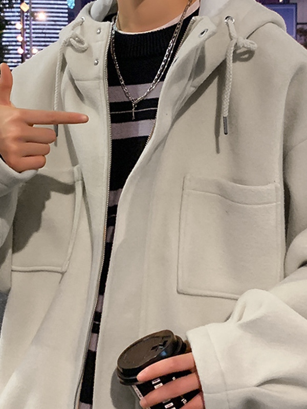 Unique Design: With its solid color, woolen design, and hooded feature, this jacket stands out from the crowd.