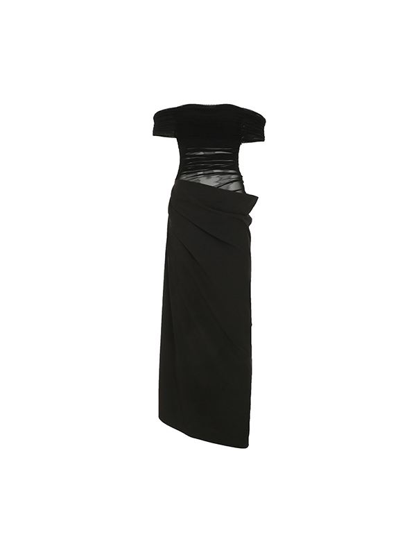 One-Shoulder Mesh Patchwork Maxi Dress