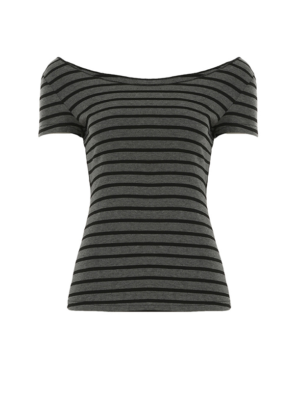 One Shoulder Striped Short Sleeve Tee