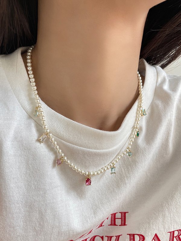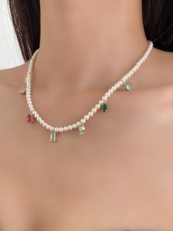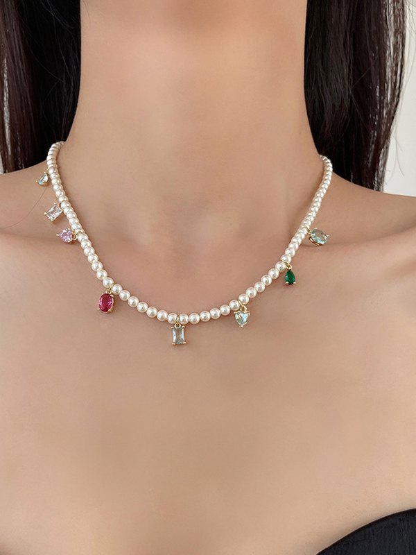 Be the first to review “Zircon Pendant Faux Pearl Necklace”