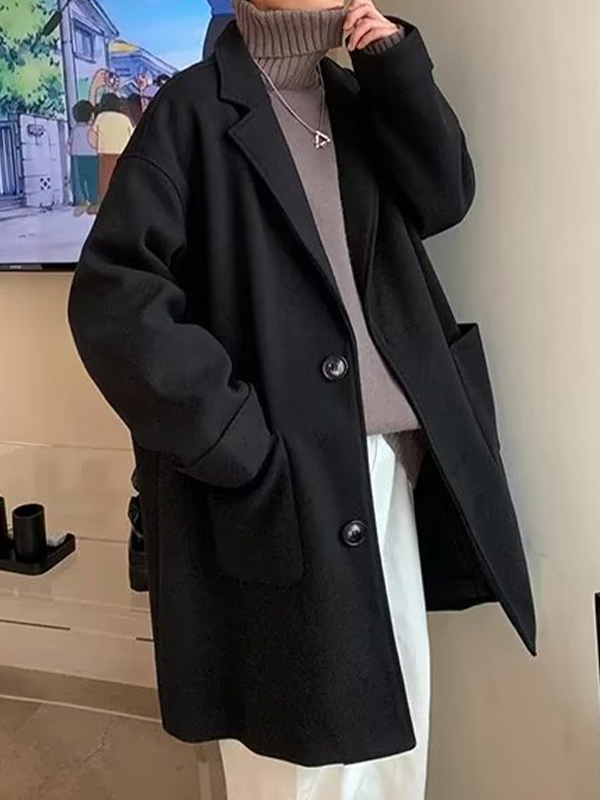 Men’s Solid Lapel Neck Longline Woolen Coat