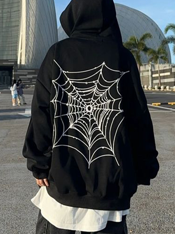 Men’s Hip Pop Spider Web Print Oversized Hoodie