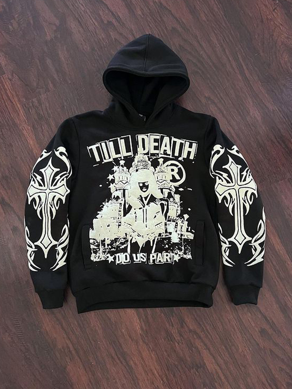 Men’s Cross Lettering Oversized Long Sleeve Hoodie