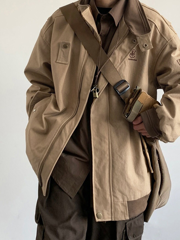Men’s Vintage Embroidery Lapel Neck Splice Jacket