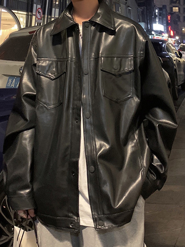 Men’s Vintage Flap Pocket Lapel Neck Leather Motorcycle Jacket