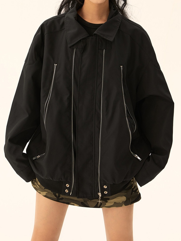 Vintage Double Zip Lapel Neck Jacket
