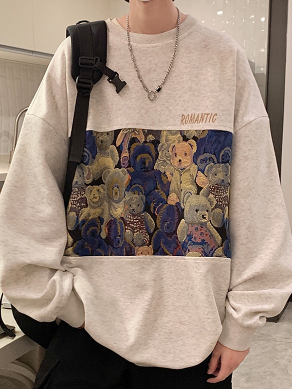 Vintage Contrast Color Devil Embroidery Styling Oversized Hoodie