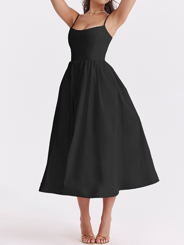 Solid Backless Cami A-line Midi Dress