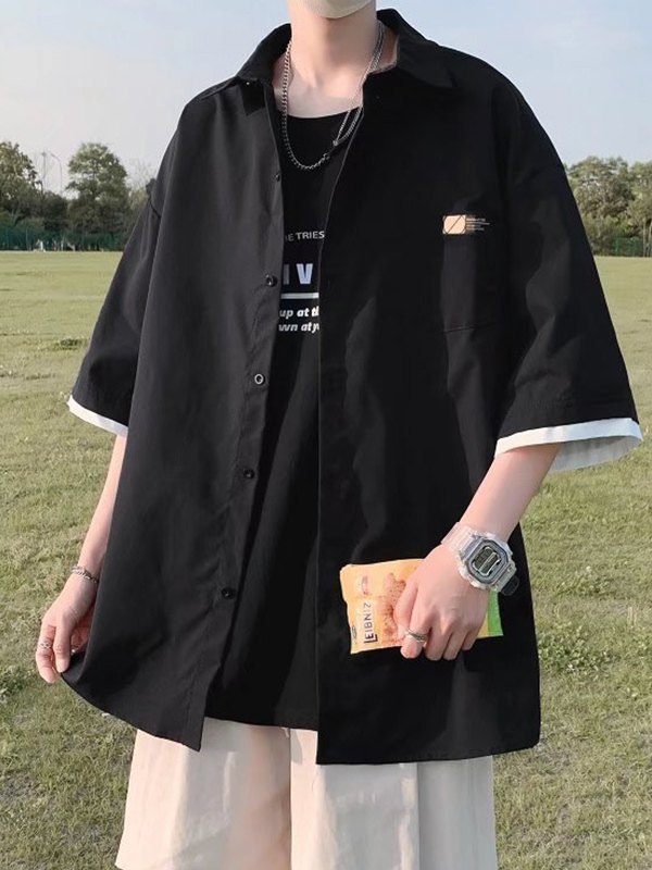 Men’s Patchwork Buttoned Short Sleeve Shirt