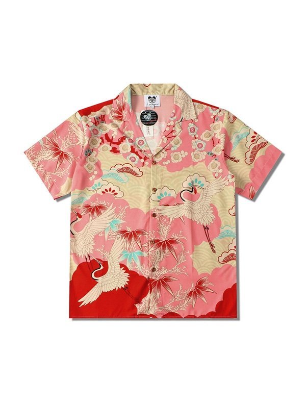 Men’s Crane Printed Short Sleeve Button Down Shirt
