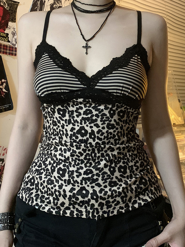 Contrast Color Lace Stitching V Neck Cami Top