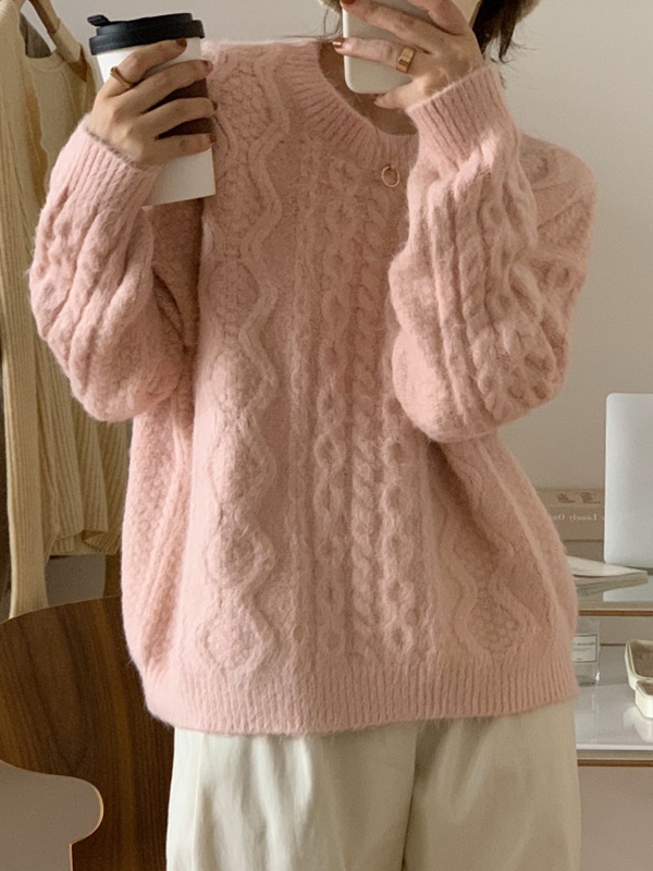 Solid Ribbed Crew Neck Long Sleeve Knit